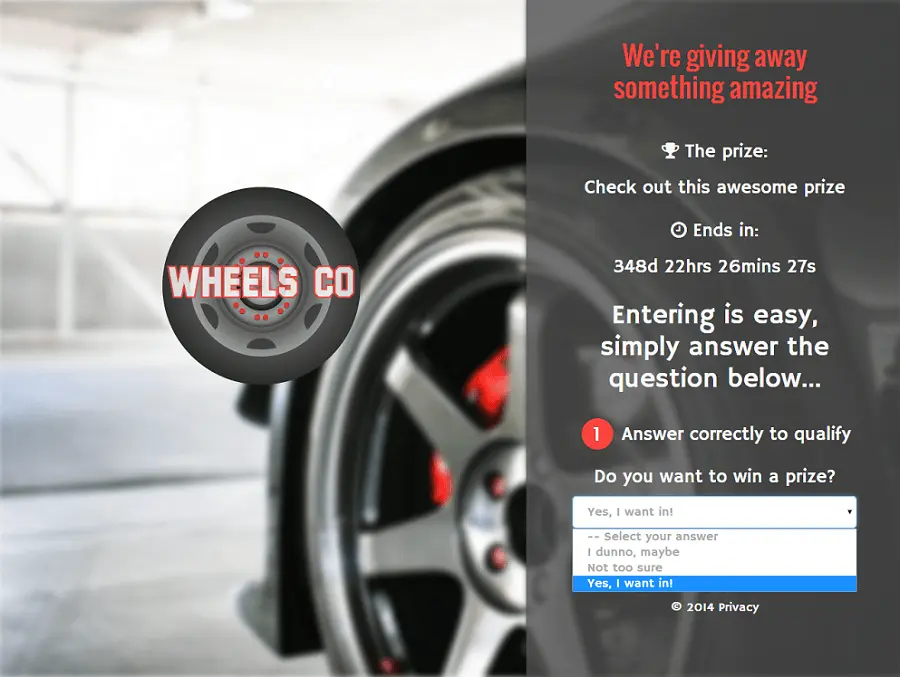 First up, we’ve built for you a simple, elegant and effective contest theme which is using the standard single step opt in process.