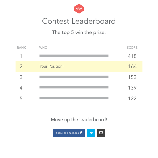 On our leaderboard giveaways, your leads can earn points and move up the leaderboard by referring friends, following your Kickstarter campaign, or taking other social actions that will spread the word about your project.