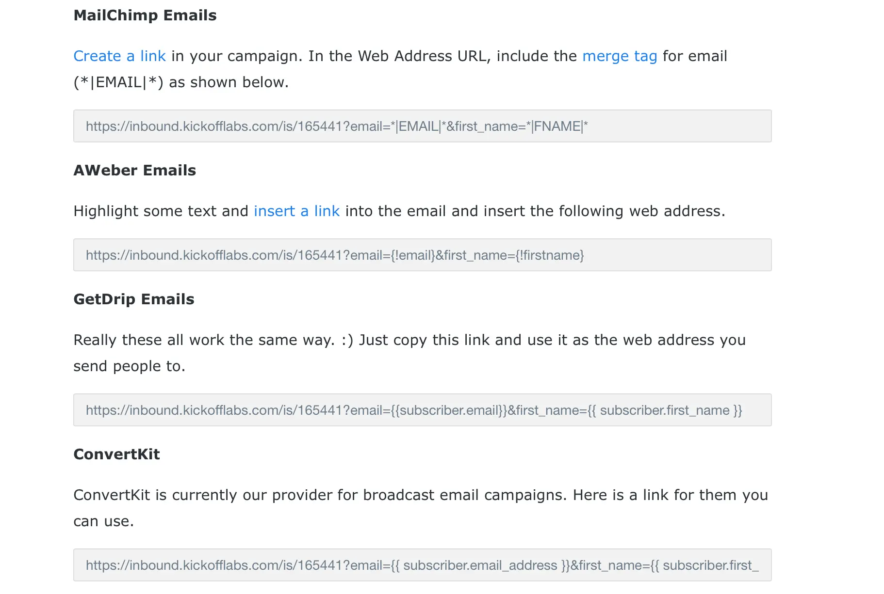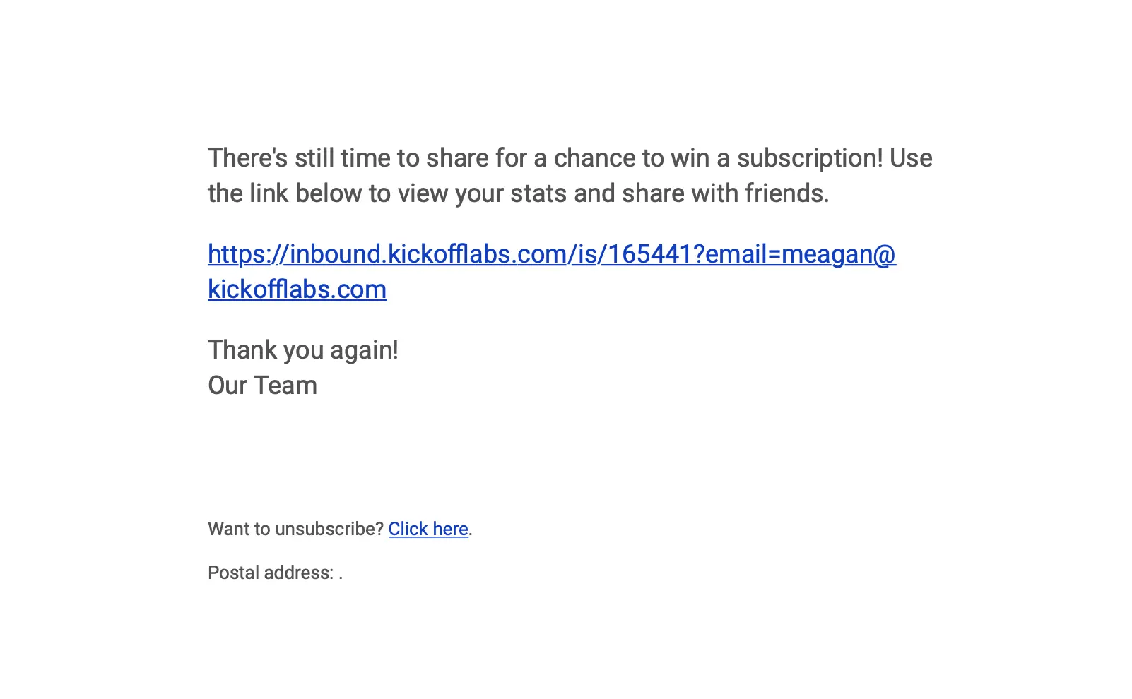 Invite existing leads to your next KickoffLabs contest, use it as a check status link, or integrate it with your favorite survey platform.