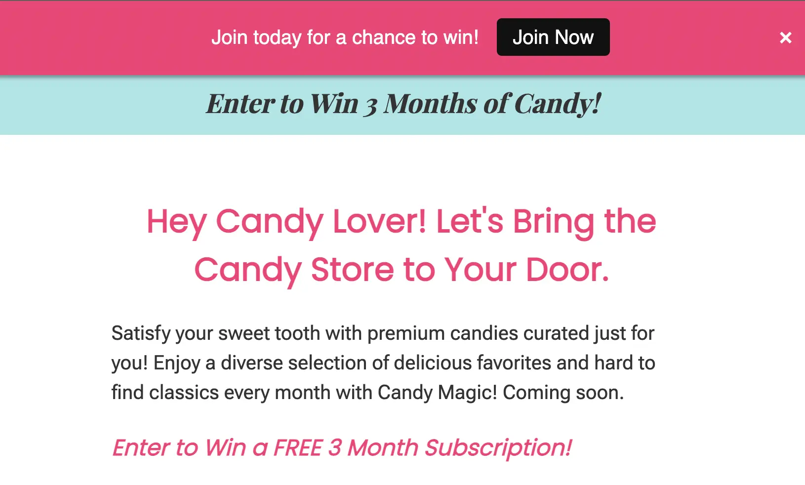 Invite site visitors to join your contest, or share other important messages!