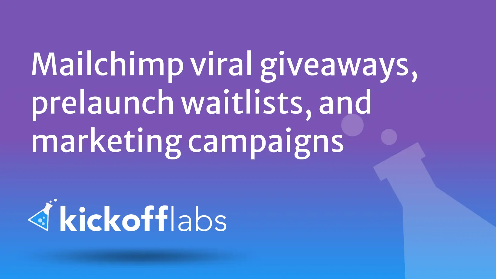 KickoffLabs makes it easy to add over 20 types of viral marketing campaigns to Mailchimp. Our platform is designed to help you create, launch, and manage viral giveaways, contests, and product launch campaigns that drive referrals, audience growth, and sales for any business.