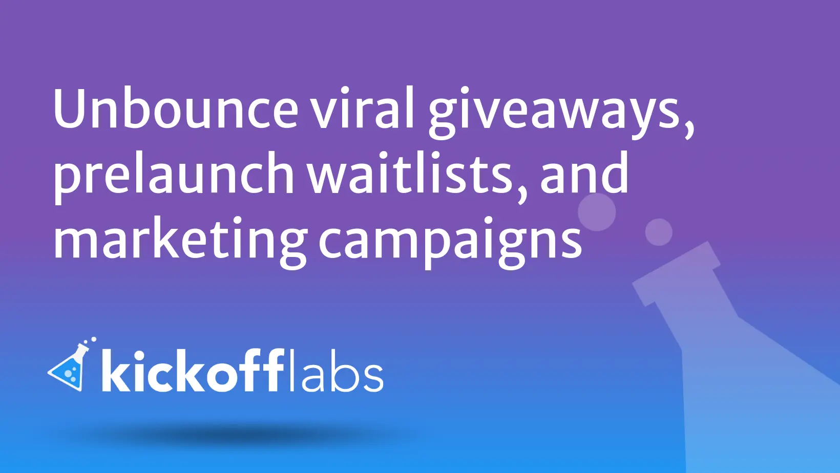 KickoffLabs makes it easy to add over 20 types of viral marketing campaigns to Unbounce. Our platform is designed to help you create, launch, and manage viral giveaways, contests, and product launch campaigns that drive referrals, audience growth, and sales for any business.