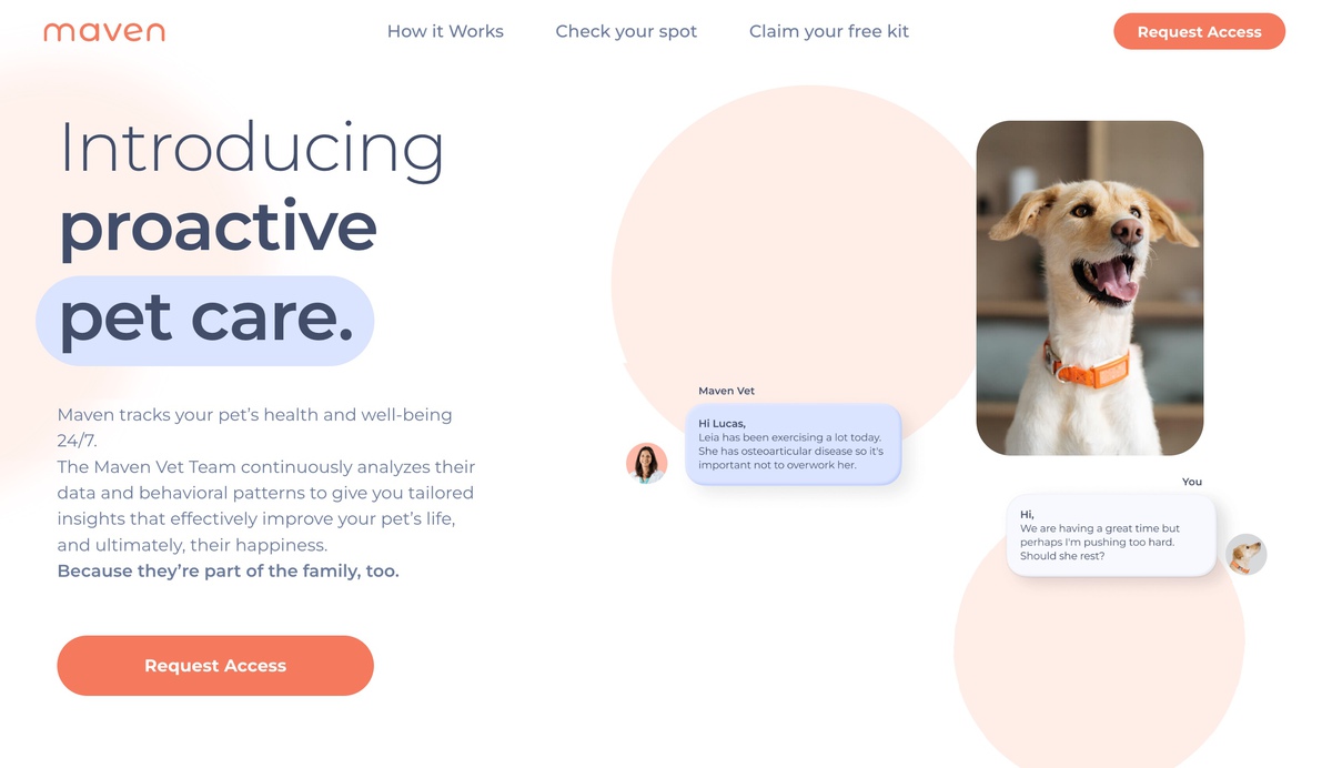 One thing that we learned, again, from our user base was that people were actually looking for solutions to be proactive on their pet's wellbeing. And so they were asking things like make Maven vet engage with me if something is wrong, let Maven vet pinpoint or suggest things where I can improve my pet's life. So those were the things that we were seeing on the wait list that then we used to communicate with the pet owners out there. One specific example with Maven, you can actually end up saving a lot of money on that build and that's one of the biggest concerns at the moment for a pet owner. And so we leverage that on our communication, on our social media, on our paid efforts so that people could first interact with the brand and come to the website. And then it's a lot of SEO has always been on our inception, so the name itself Maven, means expert, right?